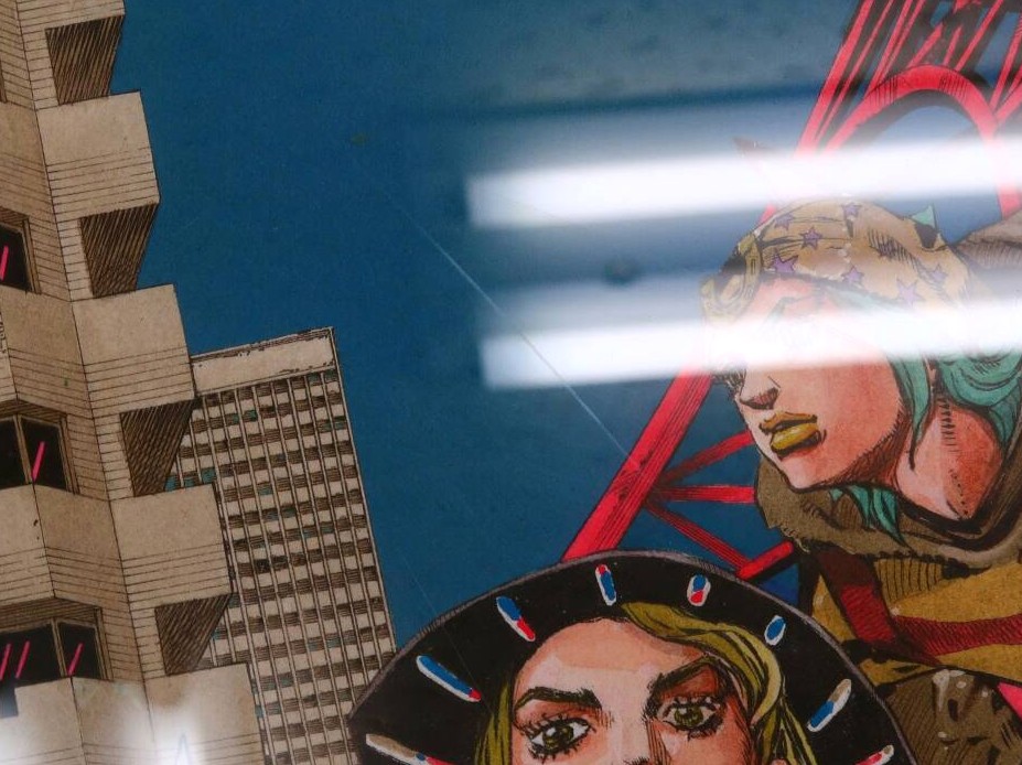東京タワーの背景も現代的で、まるで“異世界のジョジョ展”のような不思議な世界観に引き込まれます。