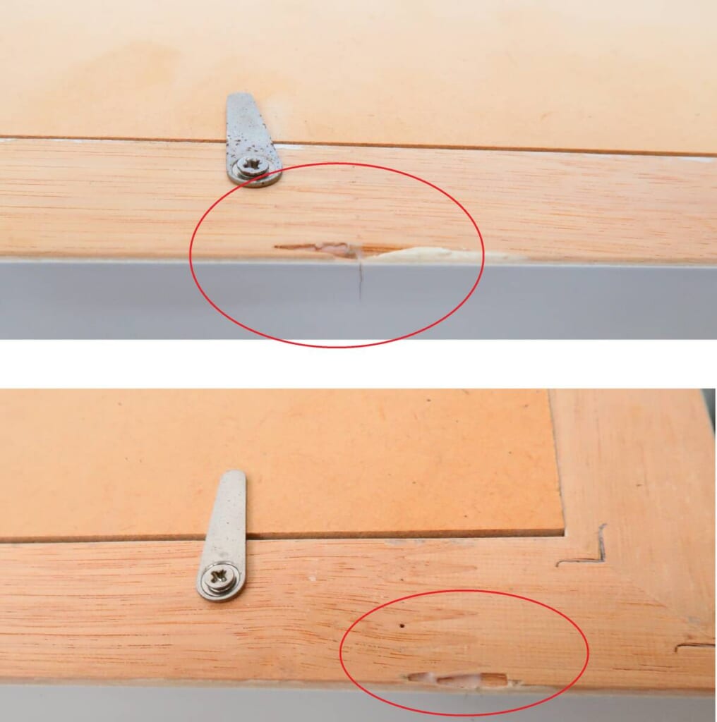 表面のアクリル板に光の加減で見えるやや大きめのスレ傷が数か所あり、額縁にも黄ばみ・縁ヒビなどの経年劣化が見られました。