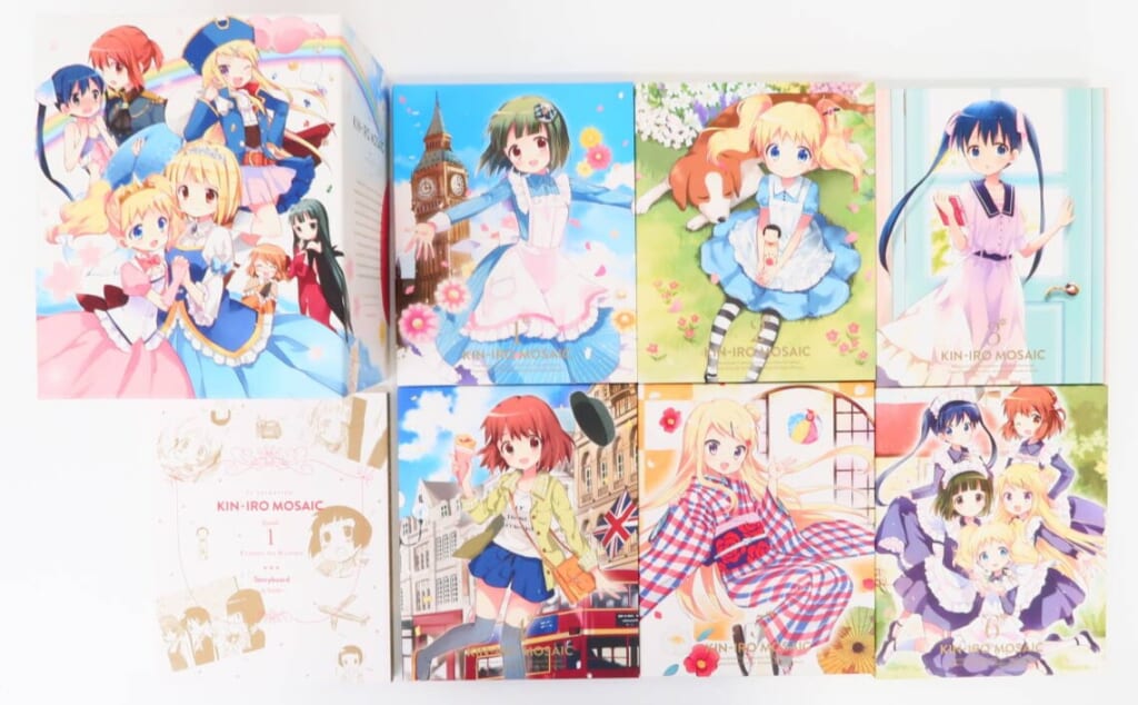 いつもご覧いただきありがとうございます。スタッフAです。今回は、「きんいろモザイク Blu-ray/全14巻セット(ハロー!!・Pretty Days・劇場版・収納BOX付き)」を買取いたしましたので、ご紹介いたします。
