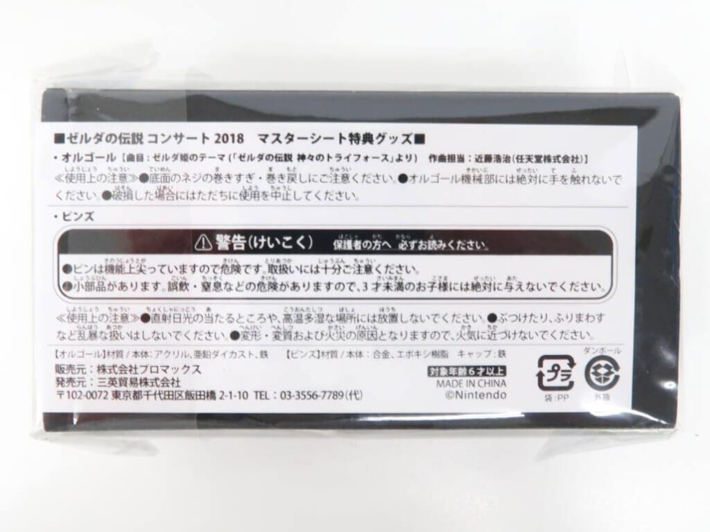 ゼルダの伝説 コンサート2018 マスターシート特典 オルゴール&ピンズ